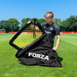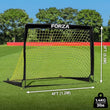 - Carry bag with shoulder strap included for easy transport. The 3ft x 2.2ft, 4ft x 3ft, and 5ft x 3.5ft goals can be folded to fit in the bag, while the 7ft x 5ft goal must be disassembled due to its size